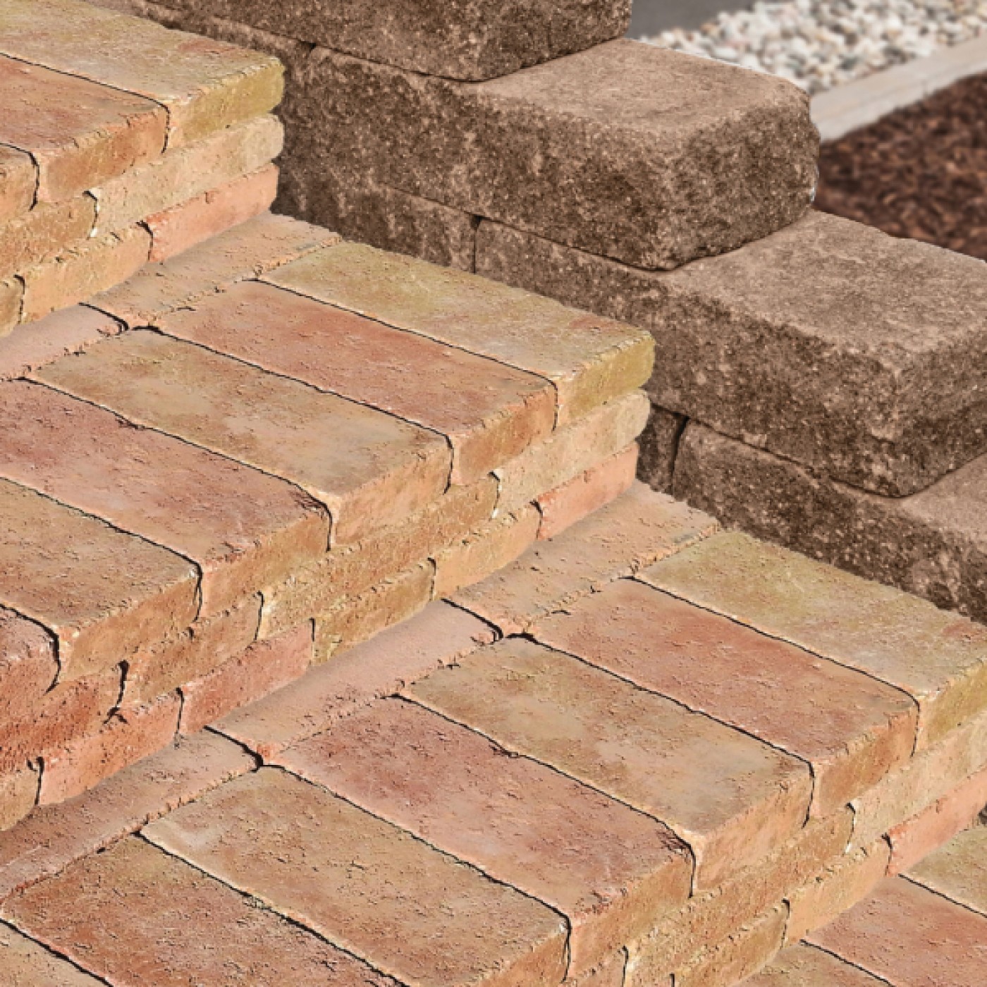 A Téglakővel és az antikolt térkövekkel burkolt udvarok nélkülözhetetlen kiegészítője. 36 db Téglakőből előre összeállított lépcsőelem, mely megkíméli a kivitelezőket a helyszíni lépcsőelem-összeállítás nehézségeitől.